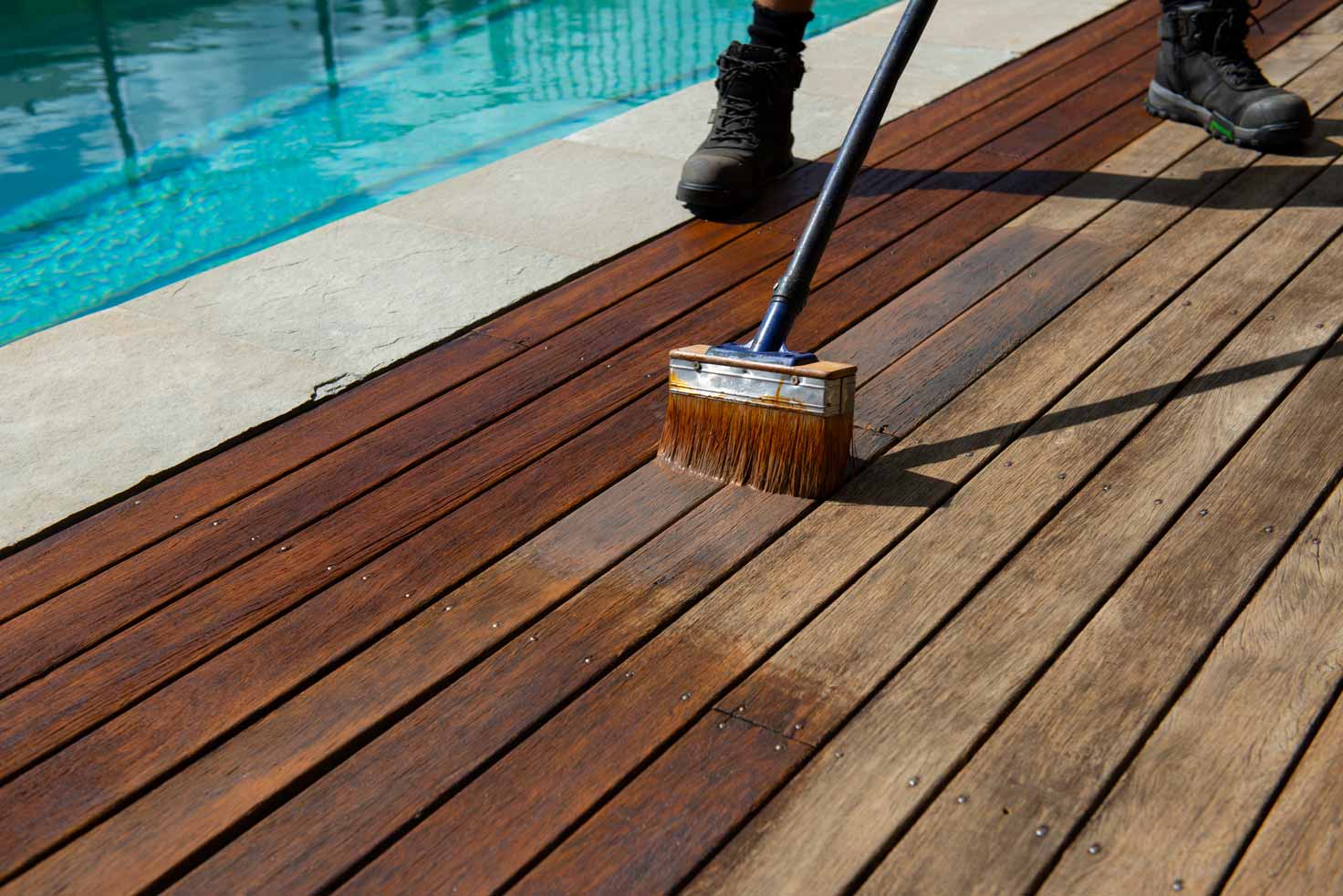 With much mis-information within hardware stores and property maintenance groups, we have become educators over time, in order to put our customer base back on firm ground when it comes to deck oiling. When it comes to what you want to spend your money on, it’s good to keep it really simple. Either you want a layer coating or a penetrating oil when oiling your deck. The benefits of layer coatings are their ability to look uniform and often they are easier to wash and maintain – but left for too long will always require a sanding back to restore in full. Penetrating oils, whilst seemingly easier to apply and giving a more traditional decking appearance, tend to always grey-off prematurely and cause hassles when it comes to cleaning, maintaining uniformity and prepping before re-oiling. Generally, it’s going to be cheaper to go with what’s been used previously (unless it needs stripping of course), but we advise you on which product to choose according to the above criteria and the look and feel wanted by your decking oil.