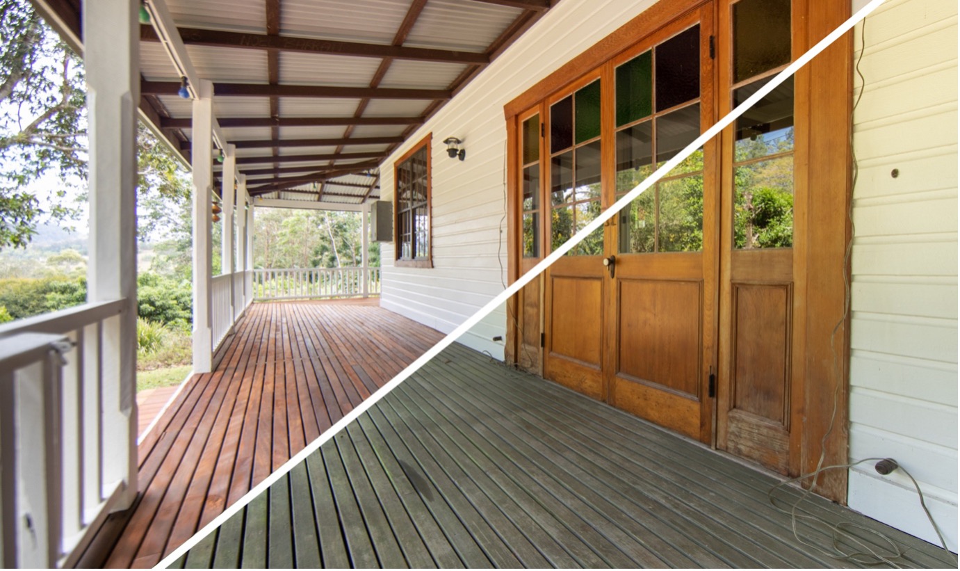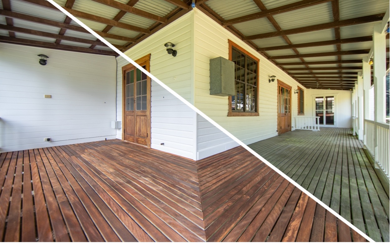With thousands of call-outs to homes all over the Northern Rivers, the team have seen it all when it comes to deck cleaning. Unfortunately or possibly by design, there is such a confusing outlook on which products to use on the hundreds of different oils and substrates available on the marketplace. When it comes to deck cleaning, we have focused our efforts on two of Australia’s most reputable brands, each with a selection of cleaners to suit every application. In conjunction with the correct timber soap or acidic cleaner, we have developed a modified pavement cleaner connected to an adjustable hot water pressure cleaner to make doing the seemingly impossible, super-efficient. With a heavy and blunt jet of water, rather than a sharp and scaring set-up (evident in many decks with swirls and marks all over them), our cleaning techniques are a fantastic way to restore, or prepare a deck that fundamentally has it’s coating intact.